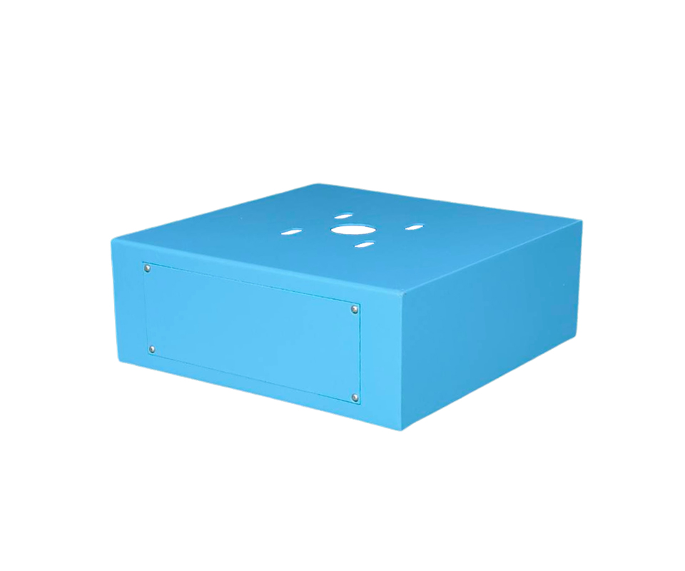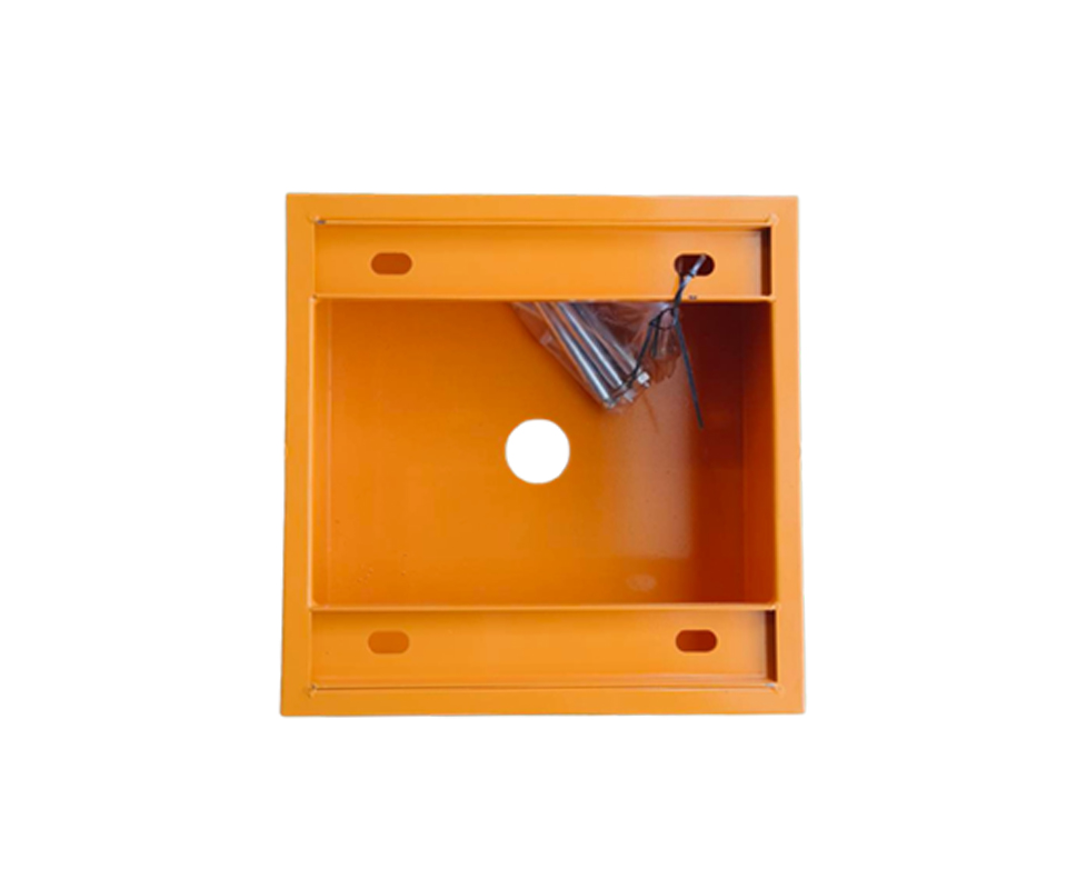 柵欄機基座(PARKING-27) 單設備安全島特厚板材鋼板,基座側面有超大檢修孔 ,底部(背面)增加橫梁‧ 材質:不銹鋼板‧ 安裝方式:固定在混凝土底座上‧ 尺寸:(長 x 寬 x 高) 40 x 40 x 14.7 公分 柵欄機基座(PARKING-27)